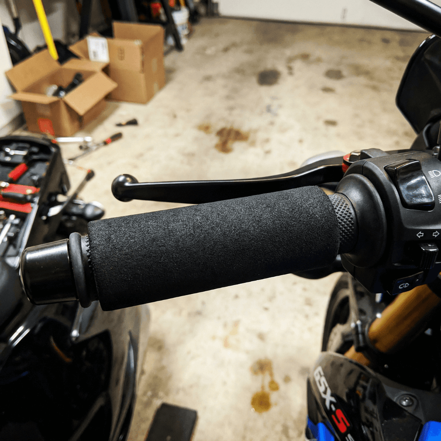 An hour in, your throttle hand starts to buzz. 30 minutes more and your fingers are tingling. By hour 2, you're shaking your hands out at every fuel stop, not because of the distance, but because of the bars. Stock grips are hard rubber, narrow, designed for a showroom. Not for 500 miles.